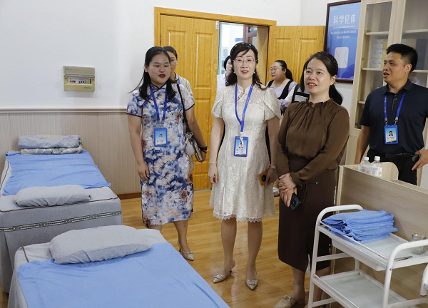 金姍姍一行實地參觀了經(jīng)貿(mào)旅游學(xué)院美容美發(fā)體驗館、康養(yǎng)美體實訓(xùn)室、艾灸推拿實訓(xùn)室等實訓(xùn)場所,對學(xué)院注重實踐技能培養(yǎng)、緊密對接行業(yè)需求的辦學(xué)理念給予了高度評價。