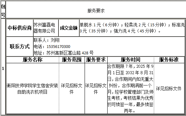 衡陽技師學院的衡陽技師學院學生宿舍安裝自助洗衣機項目公開招標采購于2025年08月12日結束,現(xiàn)將中標(成交)結果公告如下: