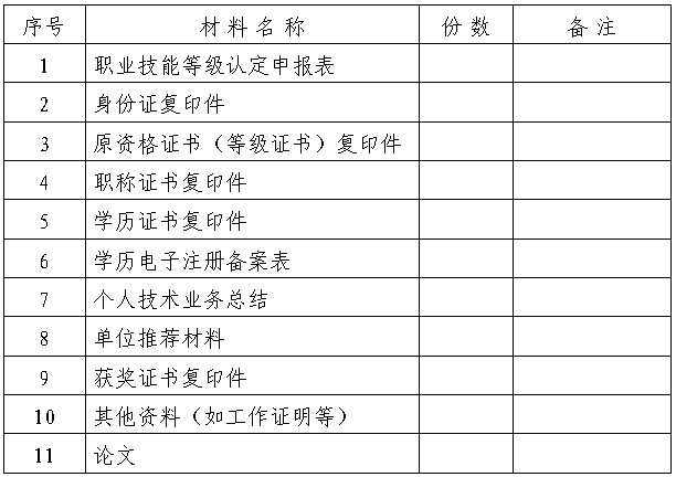 1.湖南省職業(yè)技能等級(jí)認(rèn)定申報(bào)表 1 份。
