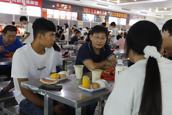 在陪餐過程中,學院領導與學生面對面溝通交流,了解學生對飯菜是否合口味、在校學習生活的適應情況,傾聽學生的意見和建議,教育引導學生養(yǎng)成勤儉節(jié)約的良好習慣,囑咐同學們要均衡飲食,加強身體鍛煉,保持良好的生活規(guī)律,好好學習。